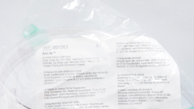 Vyaire 001363 AirLife Adult Venturi Style Mask Vinyl, Under-The-Chin Style Adult Mask, 6inch Flextube, Six Diluter Jets, Nebulizer Hood 7ft. Oxygen Tubing & U-Connect-It Adapter