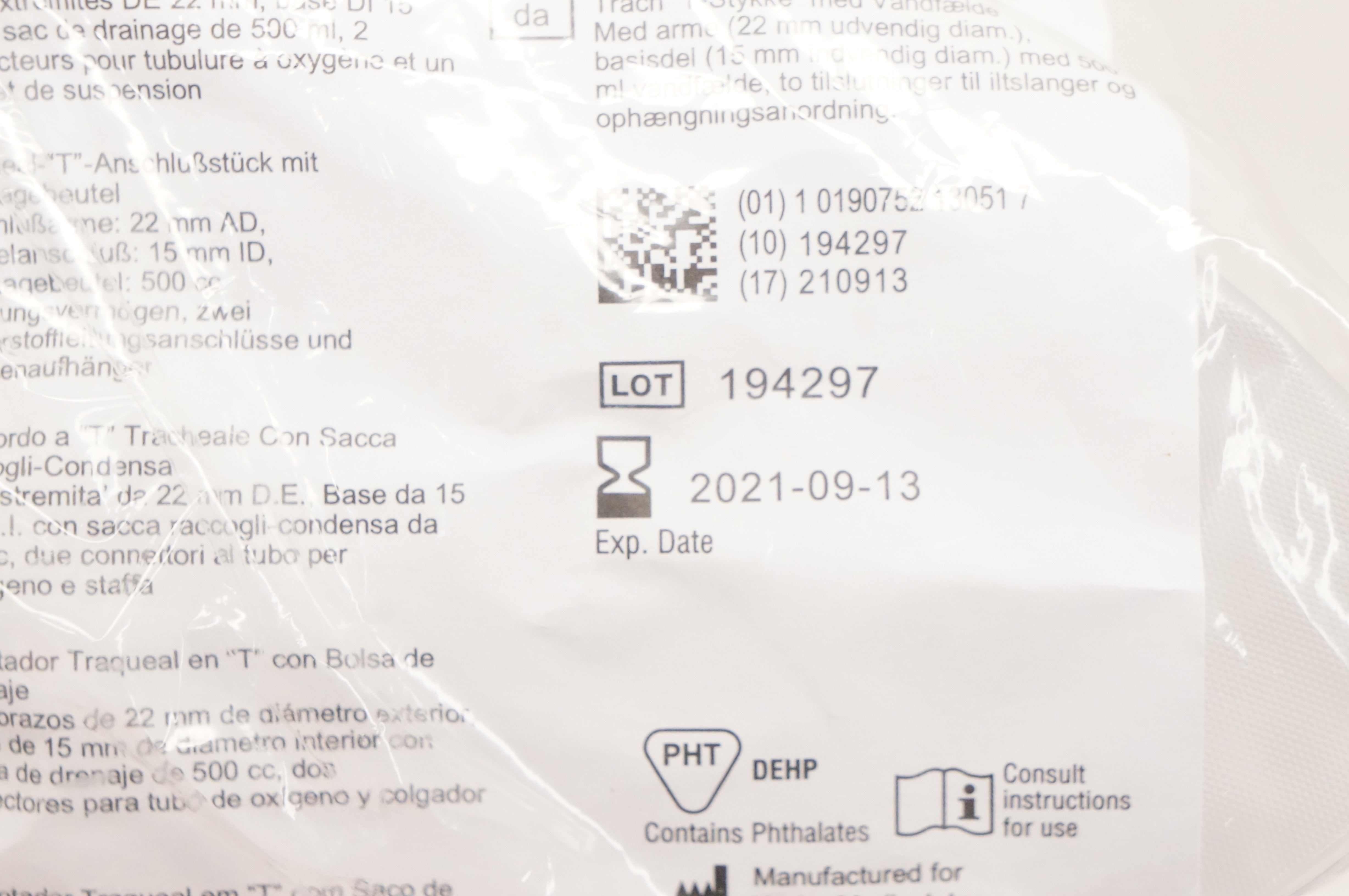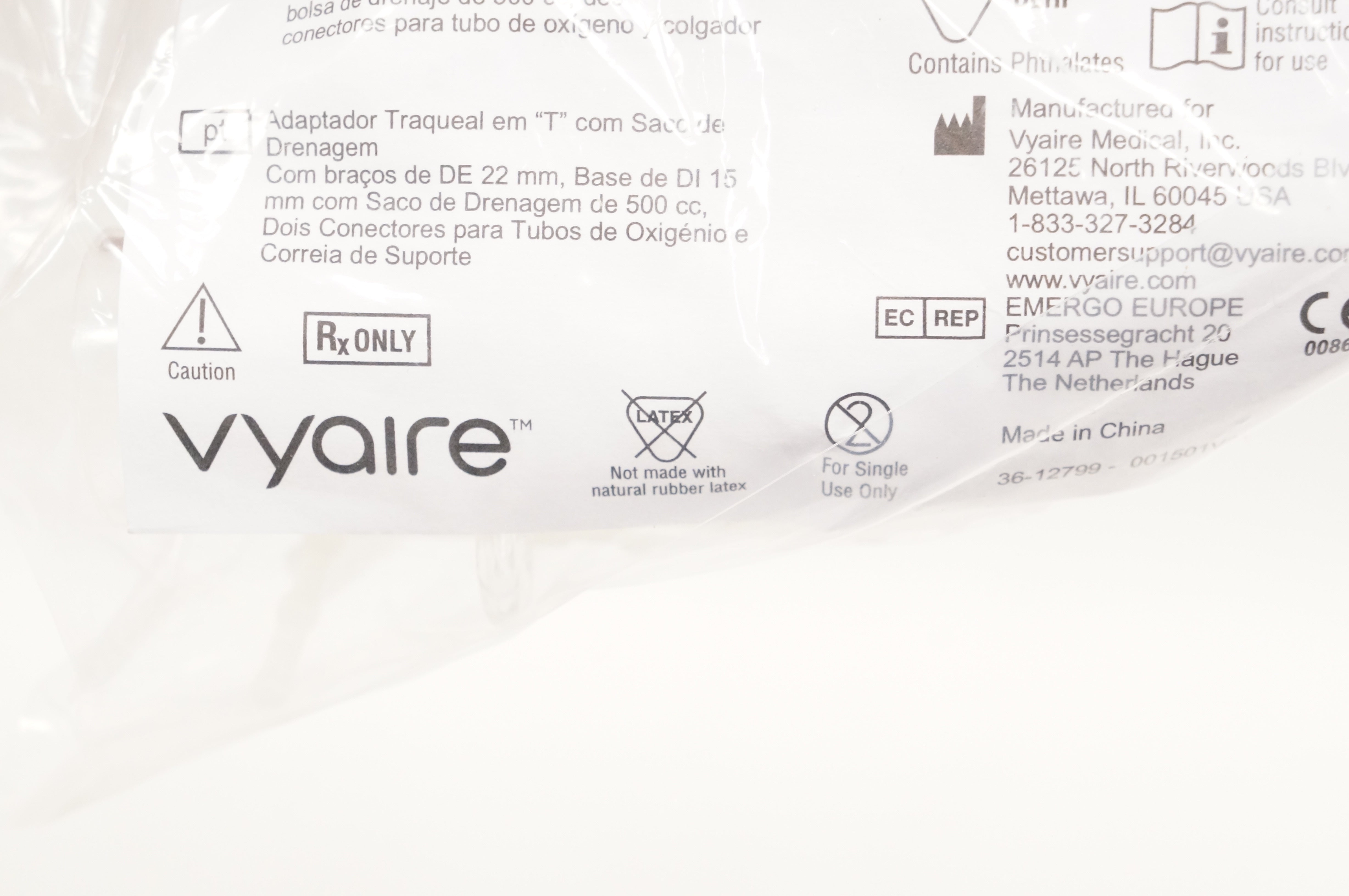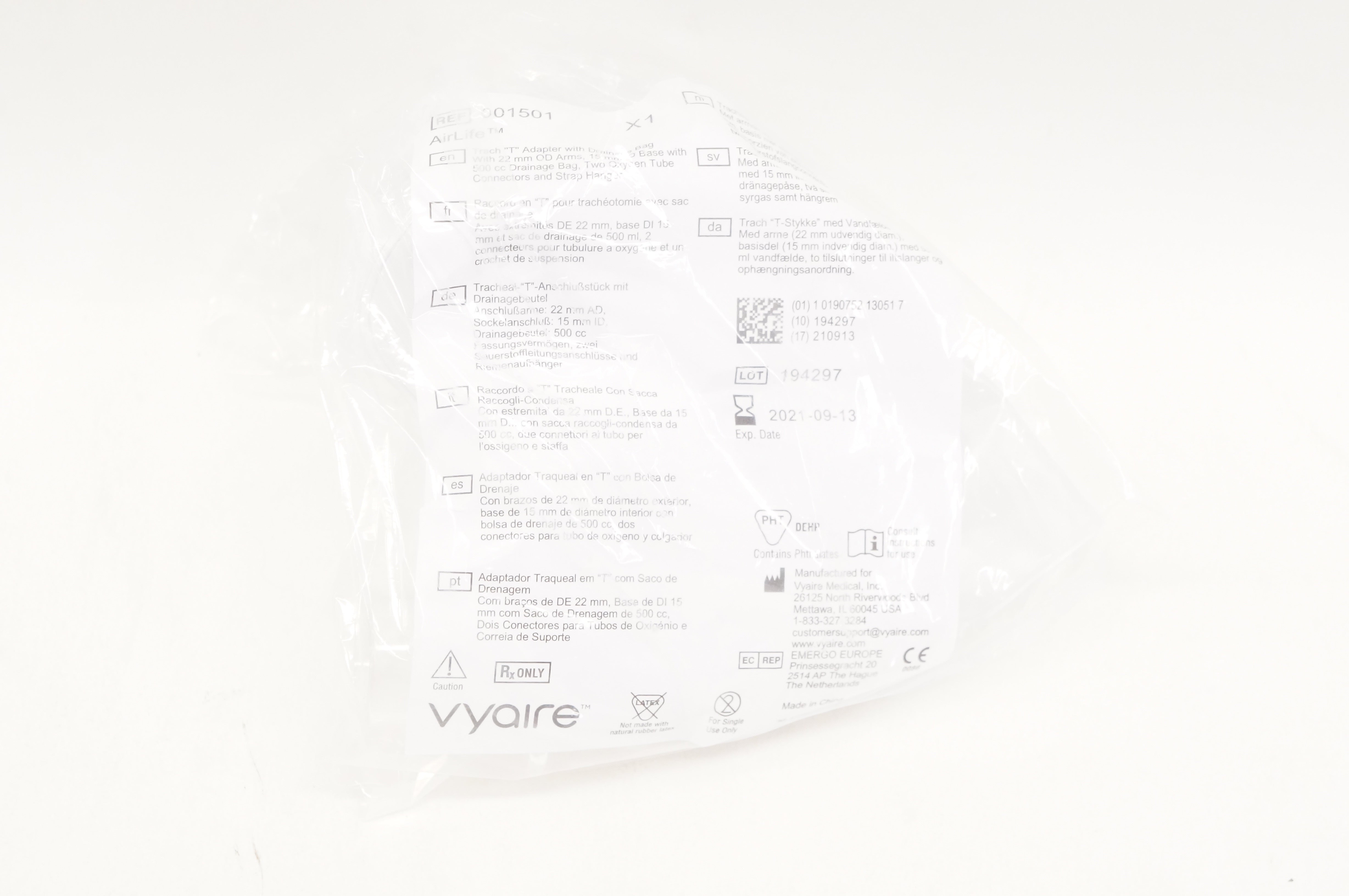 - Vyaire 001501 AirLife Trach "T" Adapter with Drainage Bag 500cc (x)