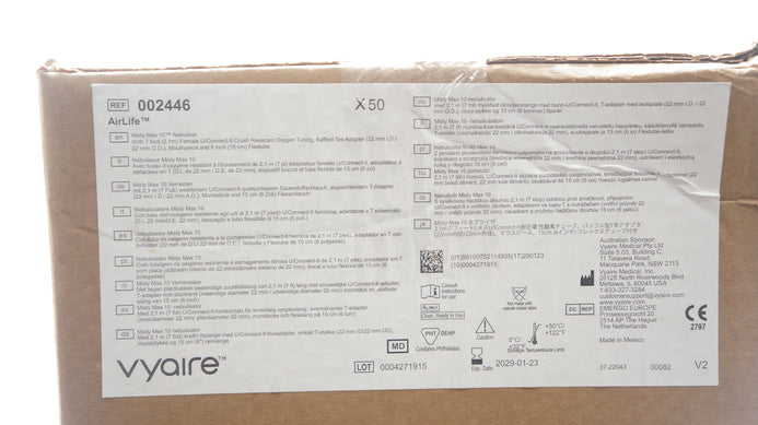 - Vyaire 002446 Airlife Misty Max 10 Nebulizer W/7ft.Female Oxygen Tubing-Box of50