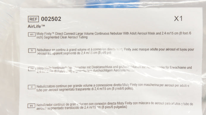 - Vyaire 002502 AirLife Misty Finity Nebulizer w/Adult Mask & 8 foot/6 in. Tubing