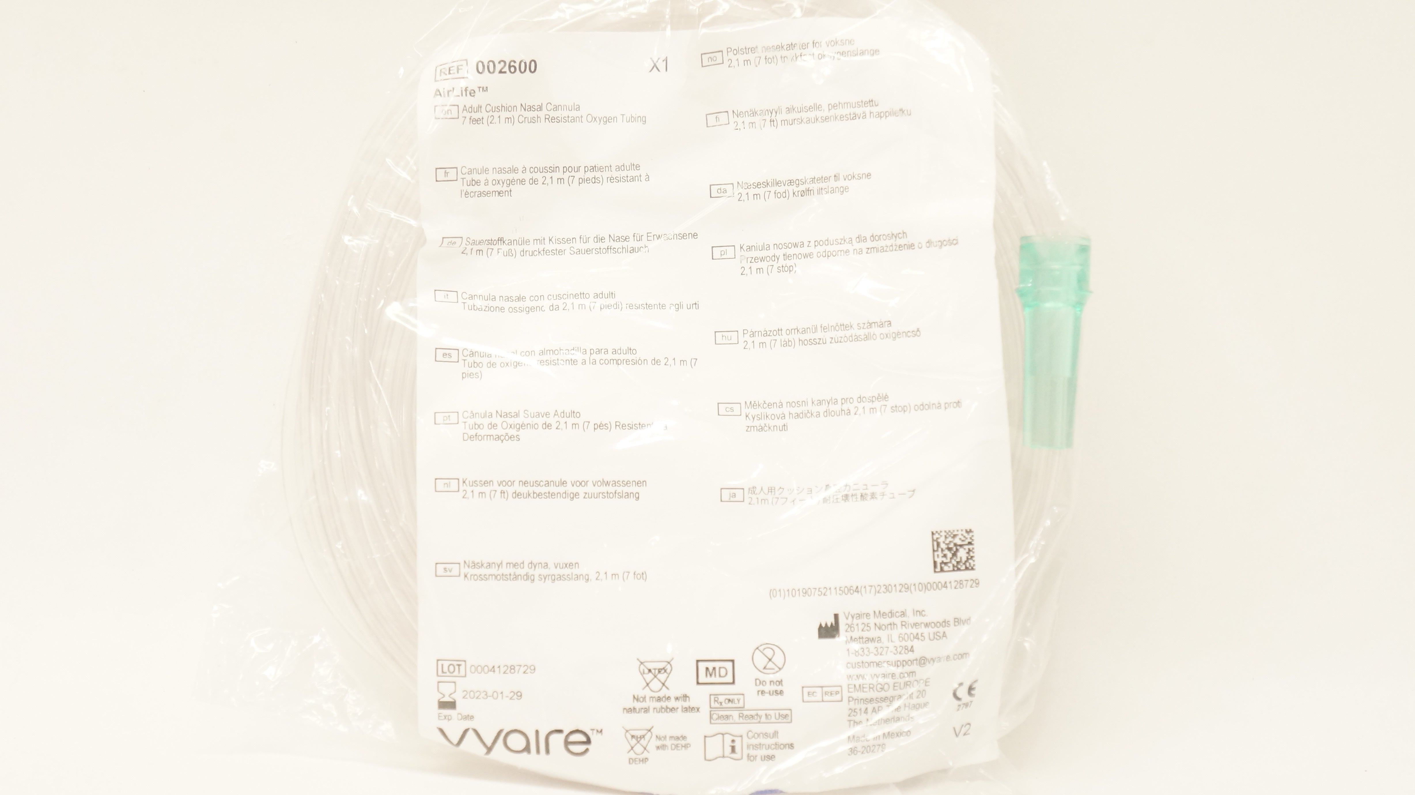 - Vyaire 002600 AirLife Adult Cushion Nasal Cannula 7ft.