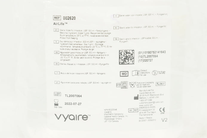 Vyaire 002620 AirLife Sterile Water 500 ml