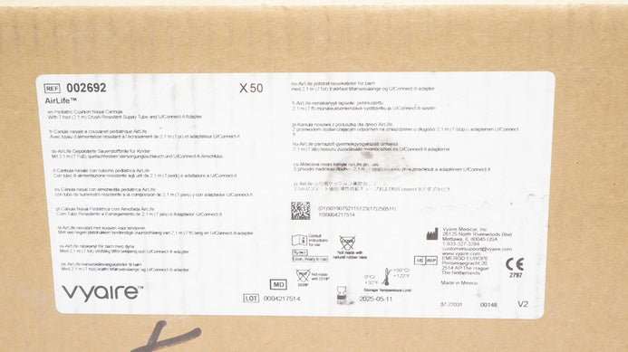 Vyaire 002692 Airlife Pediatric Nasal Cannula w/7ft Tube & Adapter(x)- Box of 50
