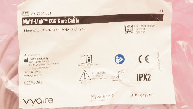Vyaire 2017004-001 Multi-Link ECG Care Cable Neonatal DIN 3-Lead,AHA,3.6m/12Ft