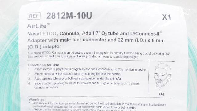 - Vyaire 2812M-10M AirLife Nasal ETCO2 Cannula, Adult, 7ft O2