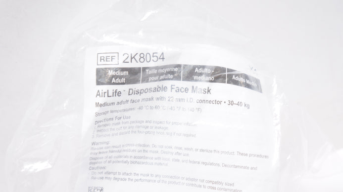 Vyaire 2K8054 AirLife Disposable Adult Face Mask w/22mm ID Connector, Medium(x)