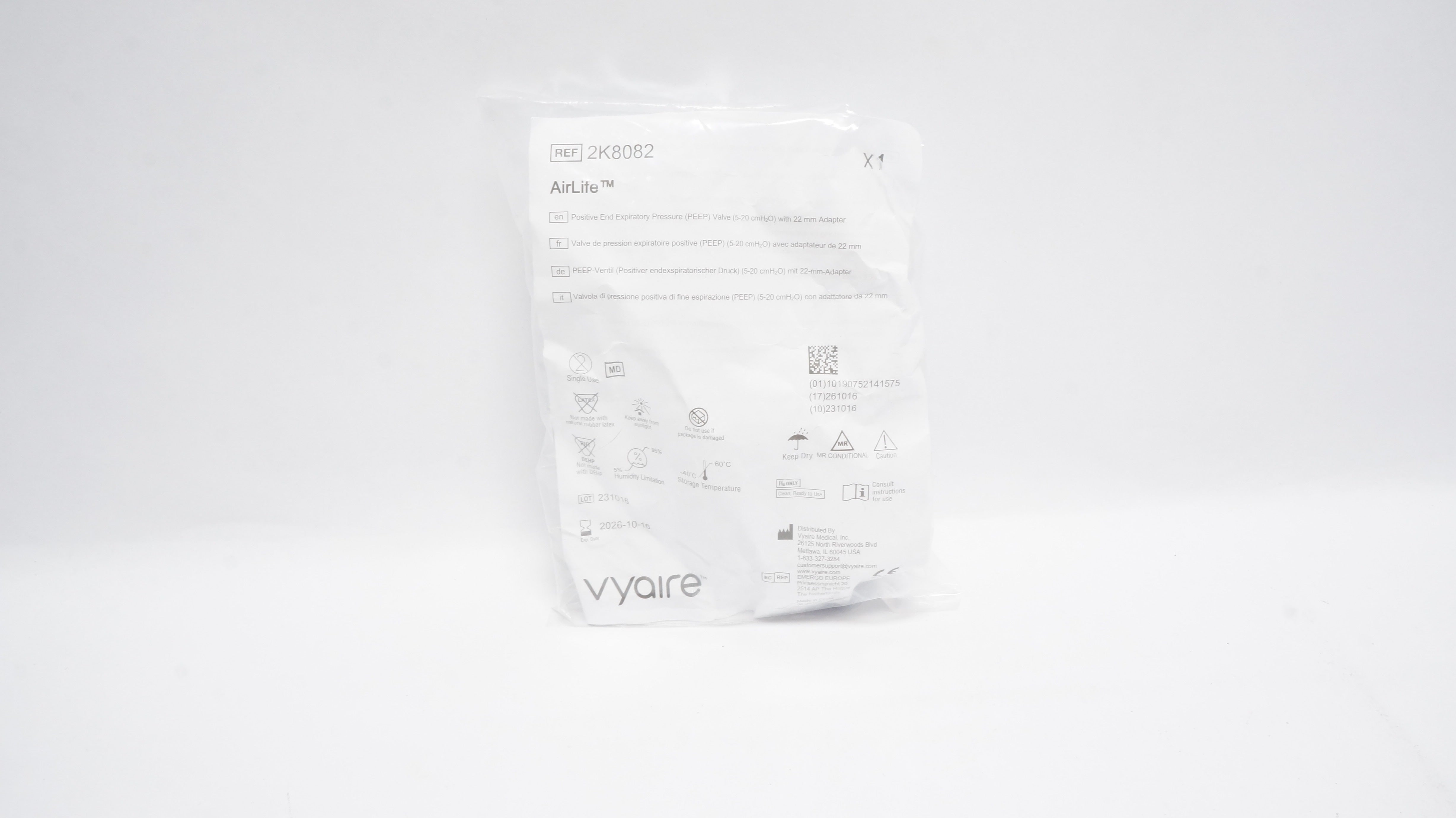 Vyaire 2K8082 AirLife Positive End Expiratory Pressure Valve 5-20cmH2O w/Adapter