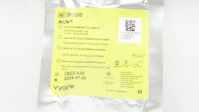 - Vyaire 2K8086 AirLife Small SeeBreath CO2 Detector 2.2-33 lbs (x)