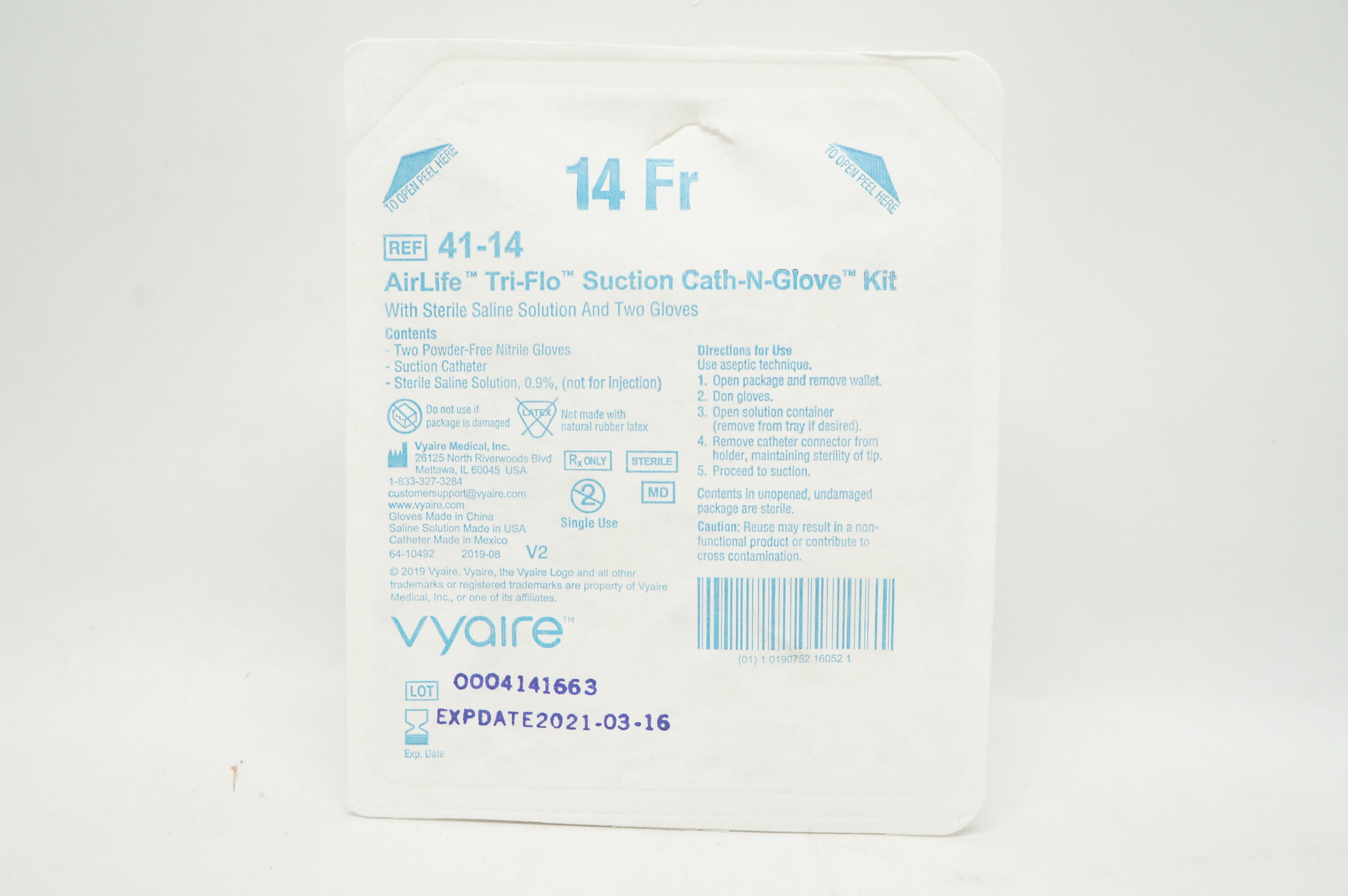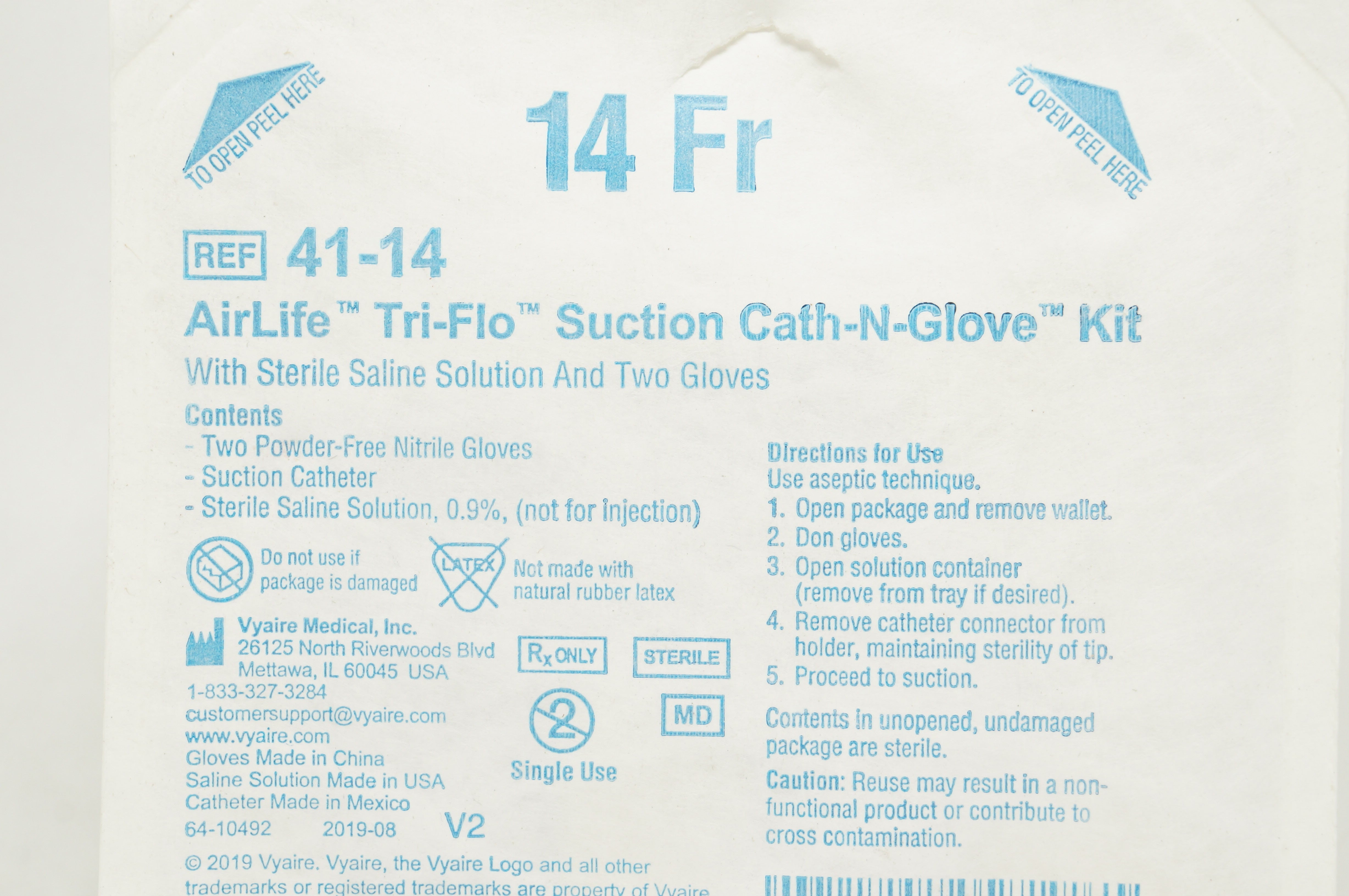- Vyaire 41-14 AirLife Tri-Flo Suction Cath-N-Glove Kit 14Fr (x)