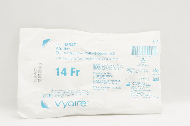Vyaire 4894T AirLife Tri-Flo Suction Cath-N-Glove Kit with Basin & Gloves 14Fr