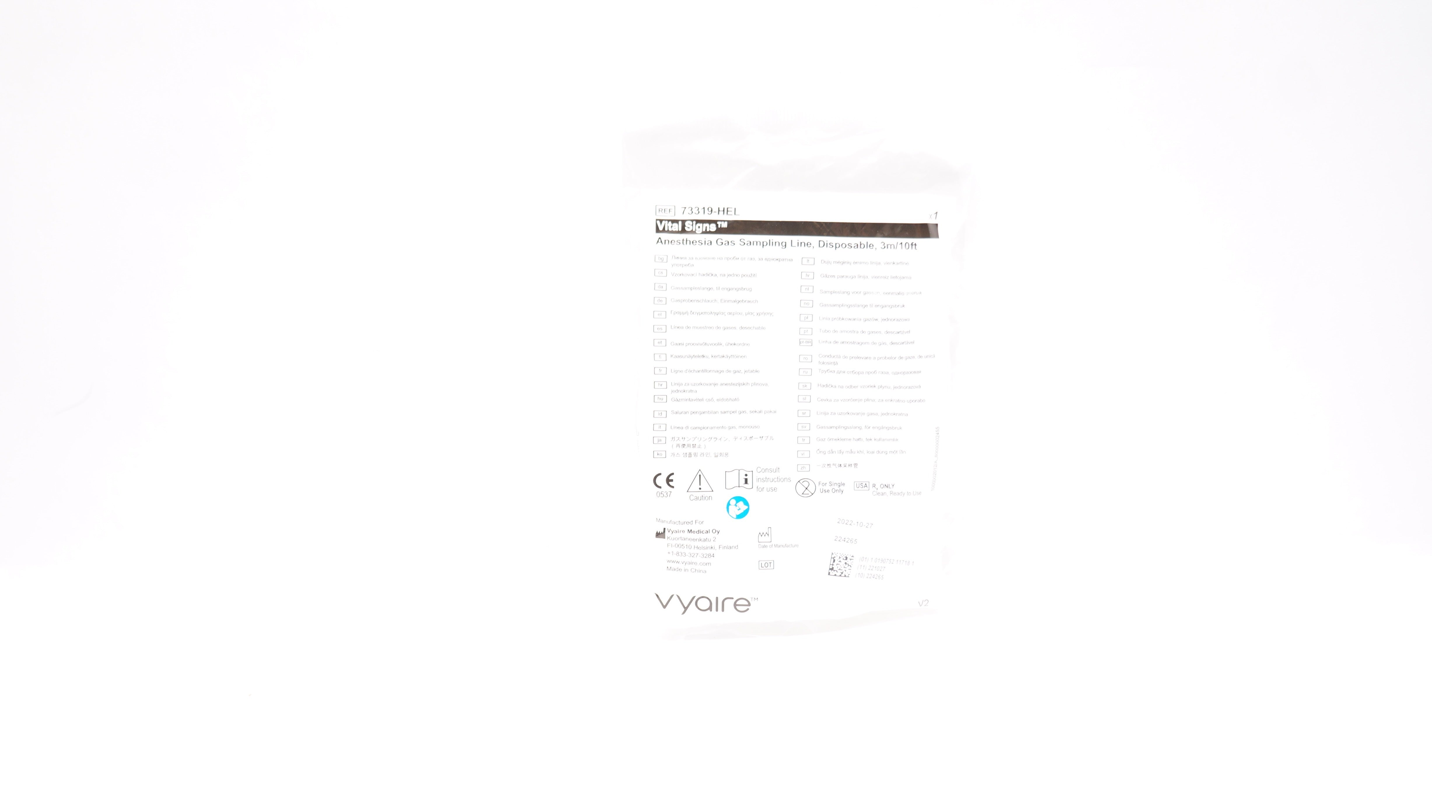 Vyaire 73319-HEL Vital Signs Anesthesia Gas Sampling Line Disposable 10Ft.