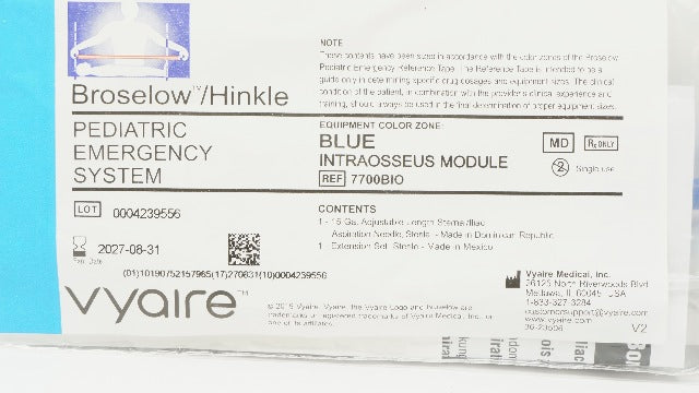 Vyaire 7700BIO Broselow/Hinkle Pediatric Emergency System Blue Intraosseous Module, Blue