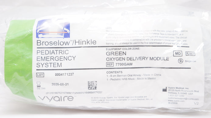 Vyaire 7700GAW Broselow/Hinkle Pediatric Oxygen Delivery Module Green -Pack of 2