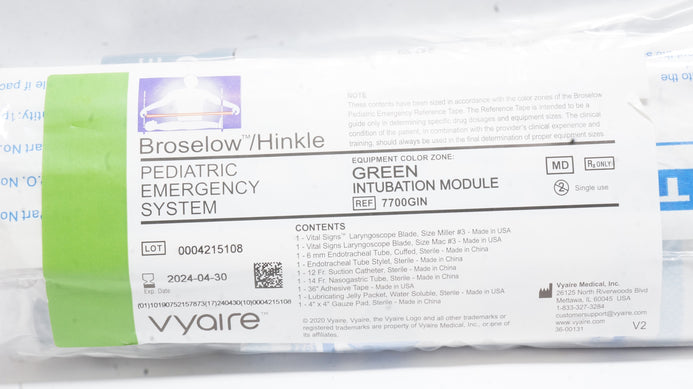 - Vyaire 7700GIN Broselow/Hinkle Pediatric Emergency System Intubation Module (x)