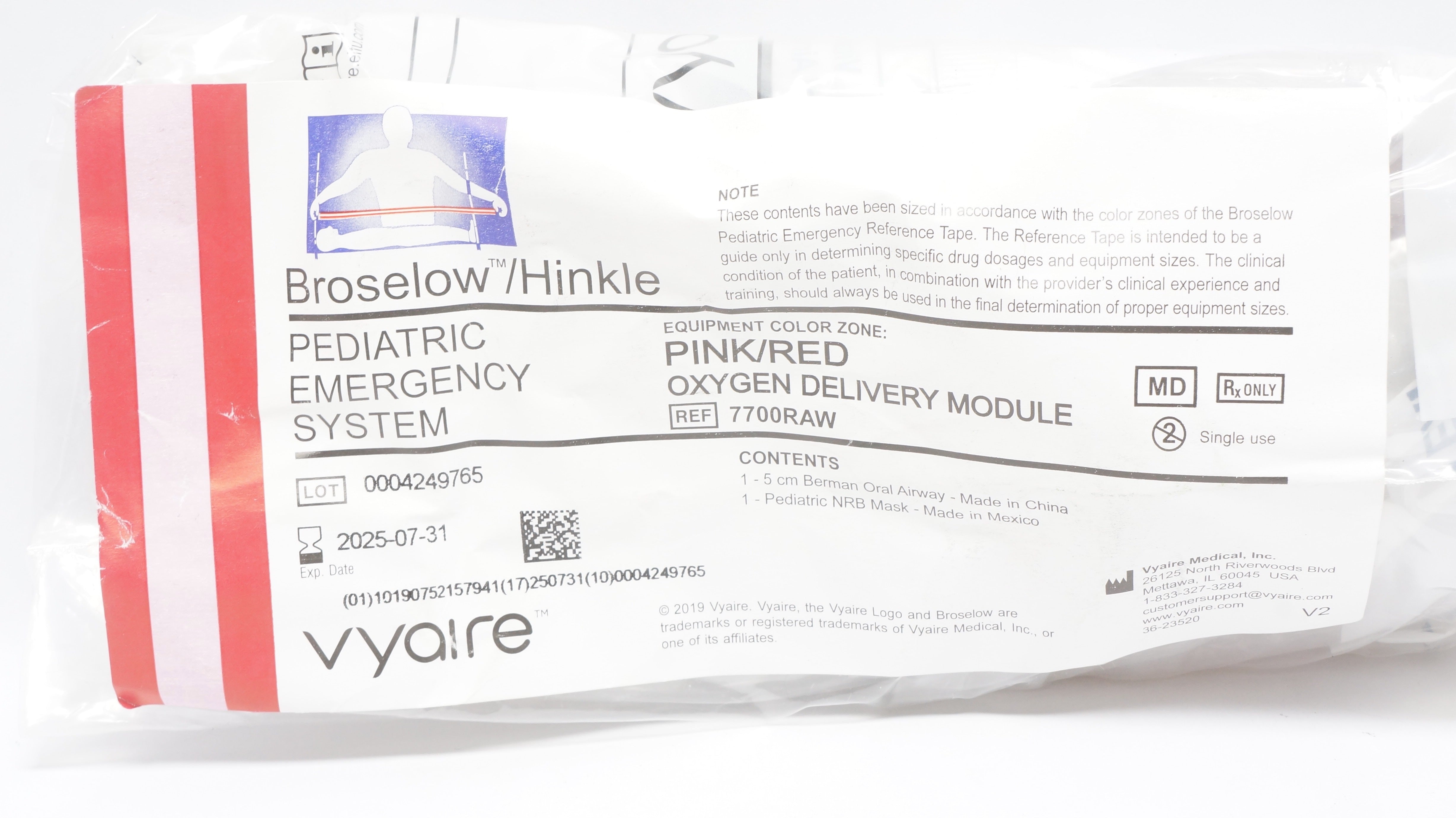- Vyaire 7700RAW Broselow/Hinkle Pediatric Oxygen Delivery Module Pink/Red (x)