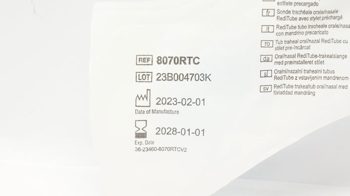 - Vyaire 8070RTC Tracheal Tube OIral/Nasal w/Preloaded Stylet 7.0ID x 9.6OD x 25mm