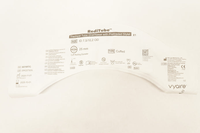 Vyaire 8075RTC RediTube Tracheal Tube Oral/Nasal Cuffed 7.5mm x 10.2 mm x 25mm
