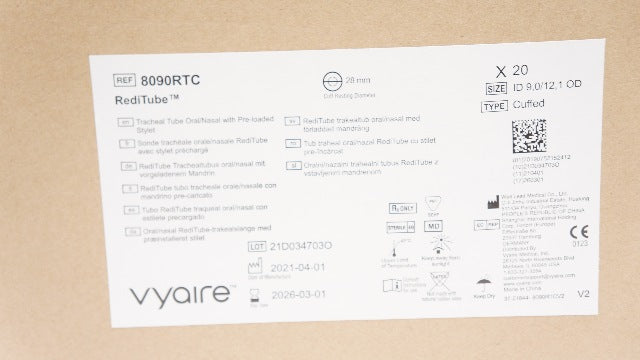- Vyaire 8090RTC RediTube Tracheal Tube Oral/Nasal w/ Preloaded Stylet - Box of 20