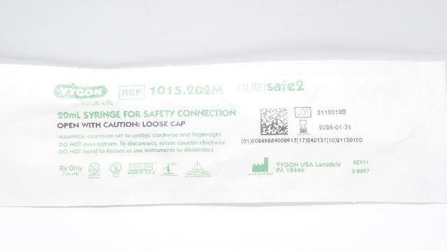 Vygon 1015.202M Nutrisafe2 20ml Syringe for Safety Connection (x)
