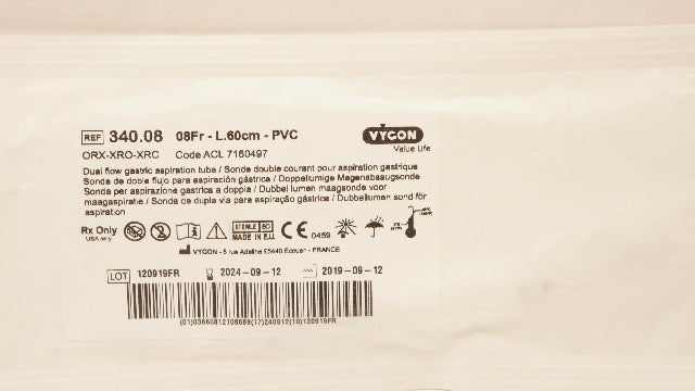 Vygon 340.08 Value Life Dual Flow Gastric Aspiration Tube PVC 08Fr x 60cm (x)