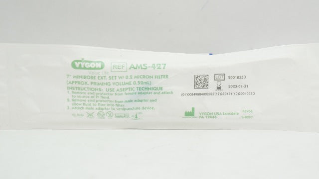 - Vygon AMS-427 7Inch Minibore Ext. Set W/0.2 Micron Filter, Prim. Vol.0.52mL(x)