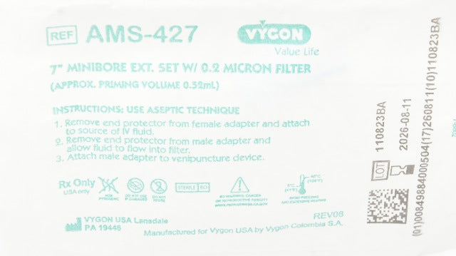 - Vygon AMS-427 Value Life 7inch Minibore Extension Set W/0.2 Micron Filter