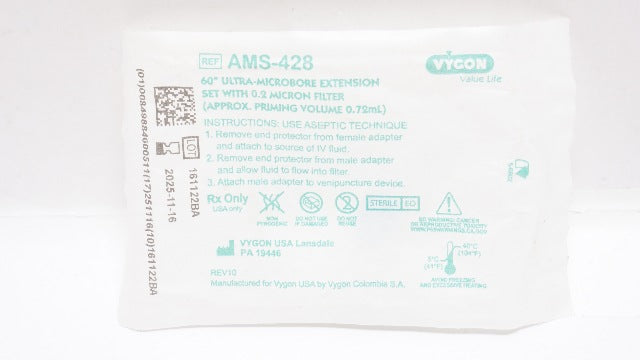 - Vygon AMS-428 Ultra-Microbore Extension Set w/0.2 Micron Filter, 60inch x 0.72mL