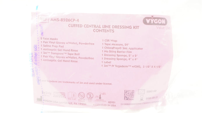 Vygon AMS-8526CP-4 Value Life Cuffed Central Line Dressing Kit (x)