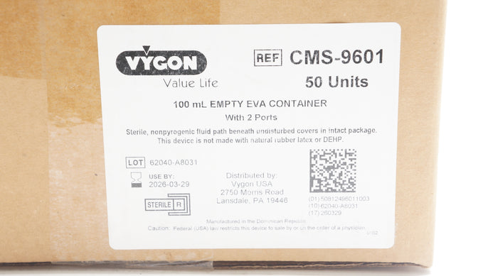 Vygon CMS-9601 Empty EVA Container 100ml, W/2 Ports - Box of 50