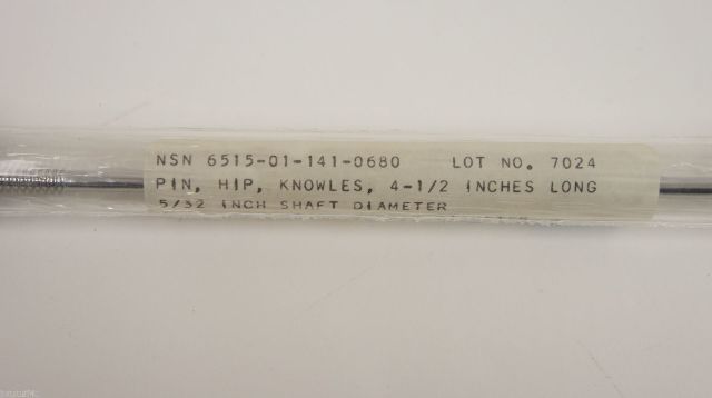Special features: knowles design; approx. 1-1/4 in. at distal end containing 3/16 inch dia. threads; hexagonal collar and brak-off shaft length approx 2-7/8 inches; for use in percutaneous pinning of reducible intracapsular femoral-neck fractures