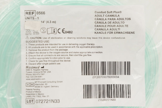 - Westmed 0566 Comfort Soft Plus Adult Cannula 14ft.