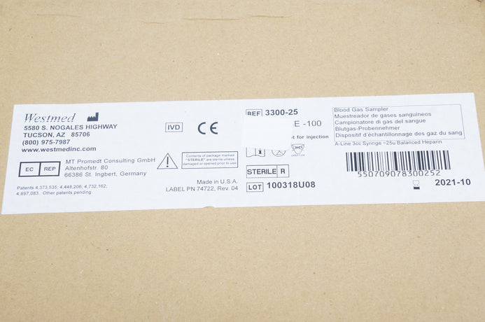 - Westmed 3300-25 Blood Gas Sampler Syringe 3cc - Box of 100