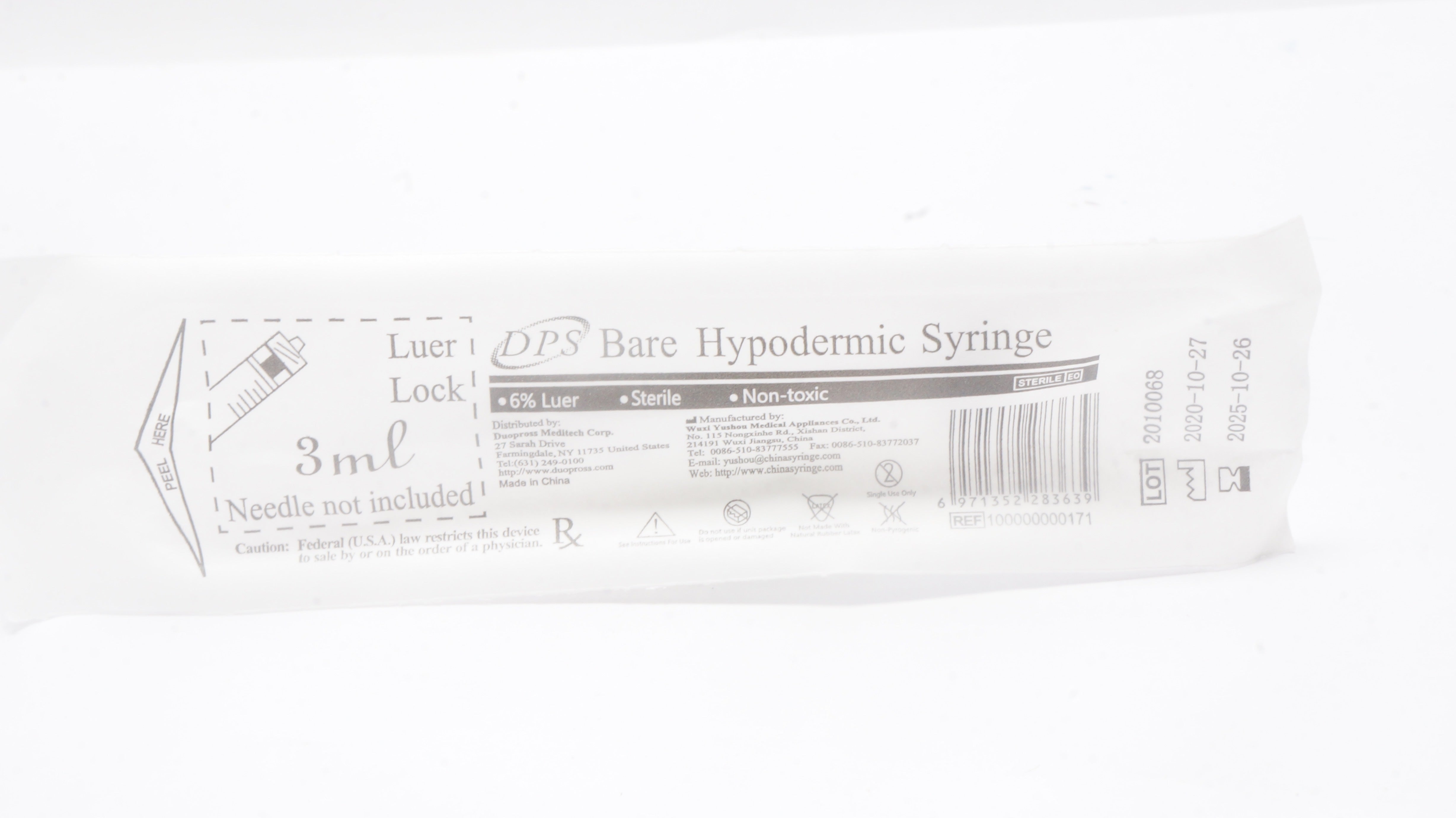 Wuxi Yushou Medical 100000000171 DPS Bare Hypodermic Syringe 3mL