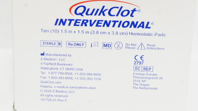 - Z-Medica 183 QuikClot Interventional Hemostatic Pad 1.5 x 1.5inch - Box of 10