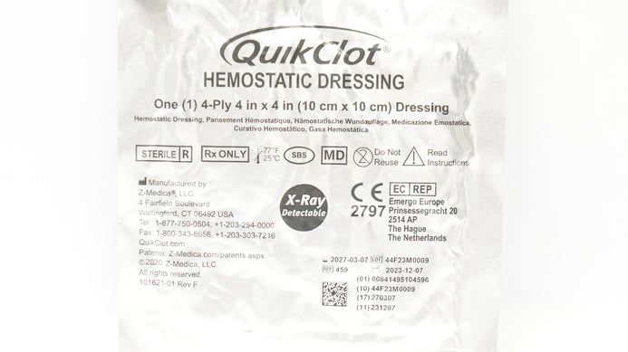 - Z-Medica 459 QuikClot Hemostatic Dressing 4-Ply 4 x 4inch