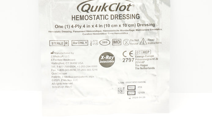 - Z-Medica 459 QuikClot Hemostatic Dressing 4-Ply 4 x 4inch (x)
