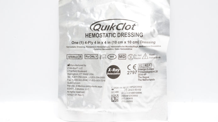 - Z-Medica 459 QuikClot Hemostatic Dressing 4-Ply 4inch x 4inch