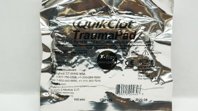 - Z-Medica 460 QuikClot TraumaPad Ten 3-Ply 12 x 12inch Hemostatic Dressing (x)