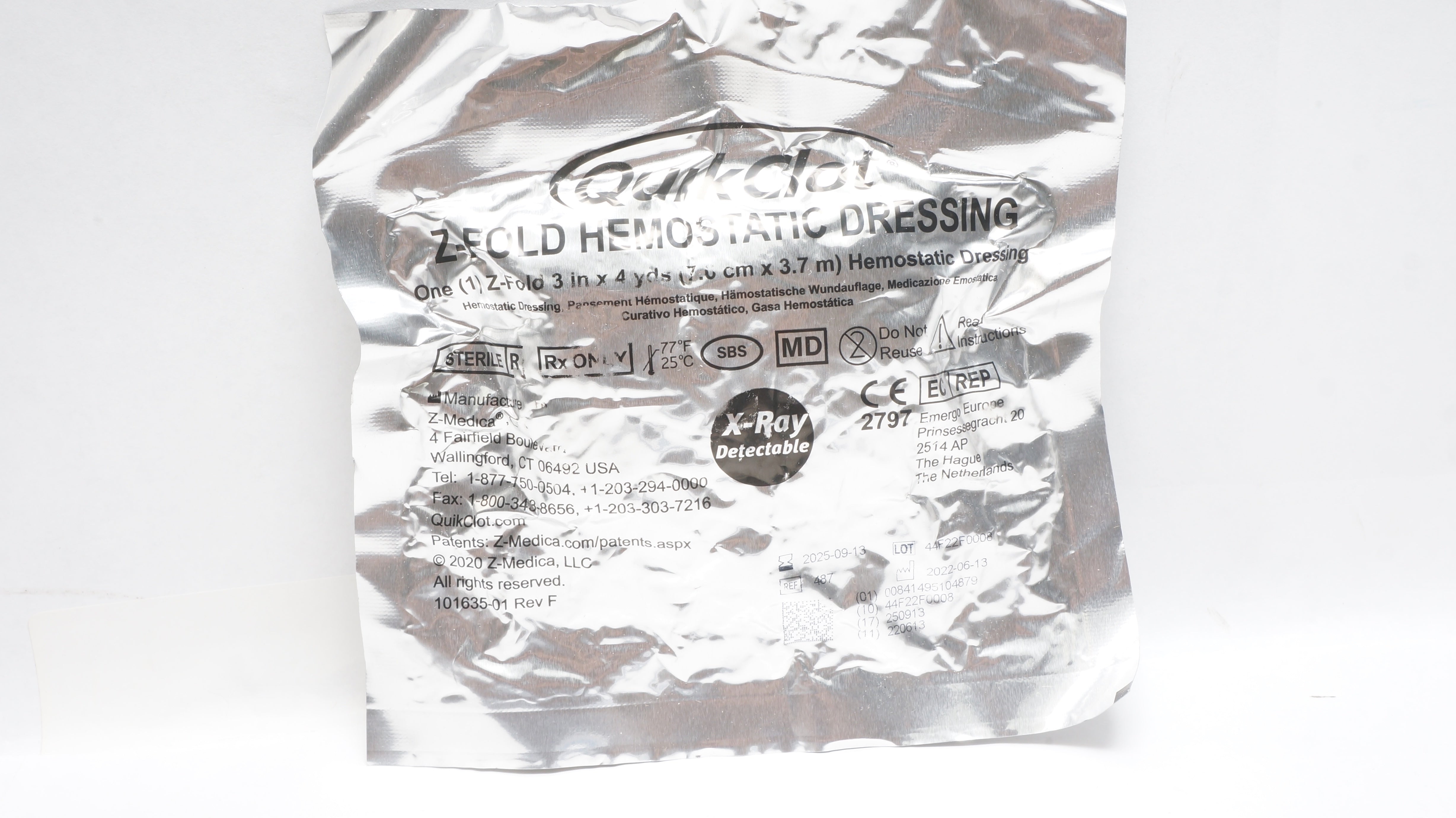 Z-Medical 487 QuikClot Z-Fold Hemostatic Dressing 3inch x 4yds