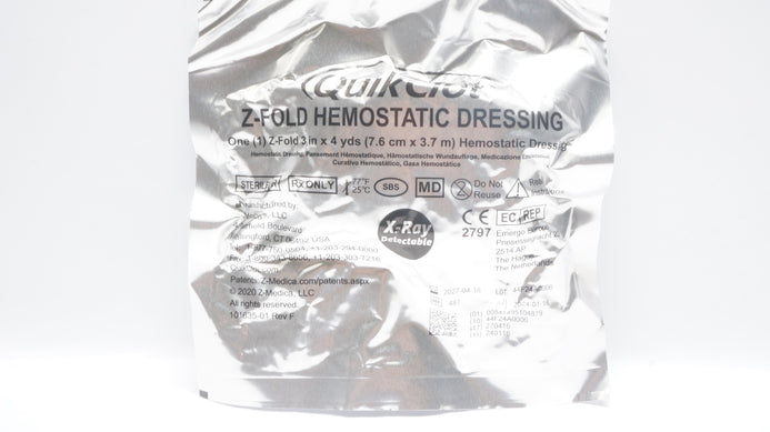 - Z-Medical 487 QuikClot Z-Fold Hemostatic Dressing 3inch x 4yds