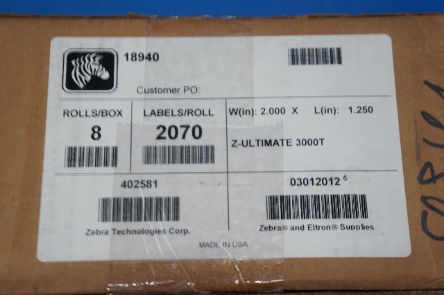 Zebra Z-Ultimate 3000T White 2" x 1.25"