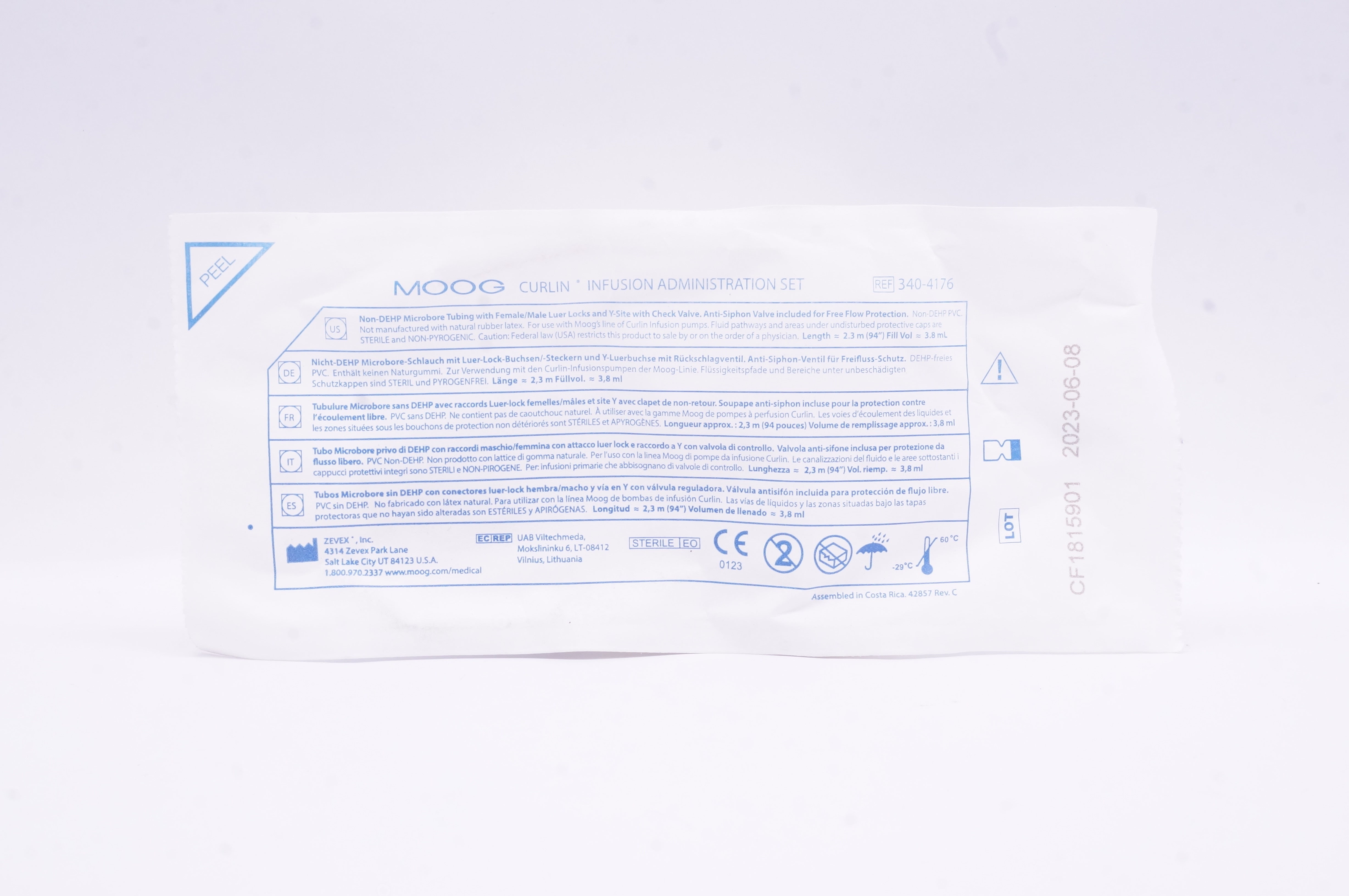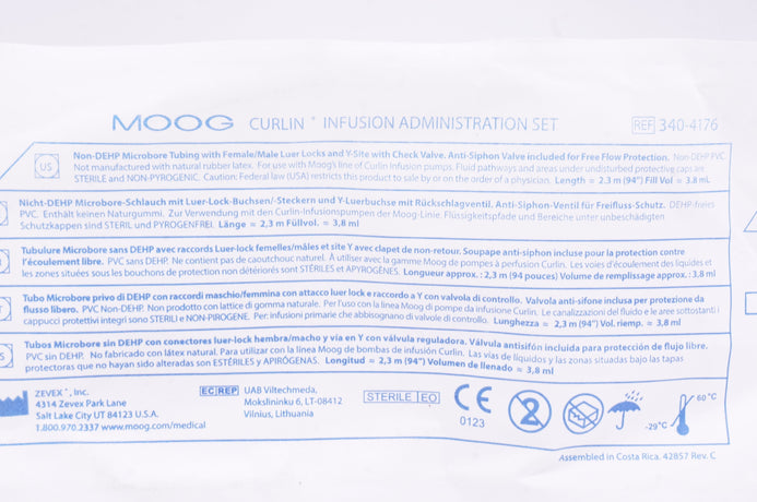 - Zevex 340-4176 MOOG Curlin Infusion Administration Set 94inch x 3.8ml