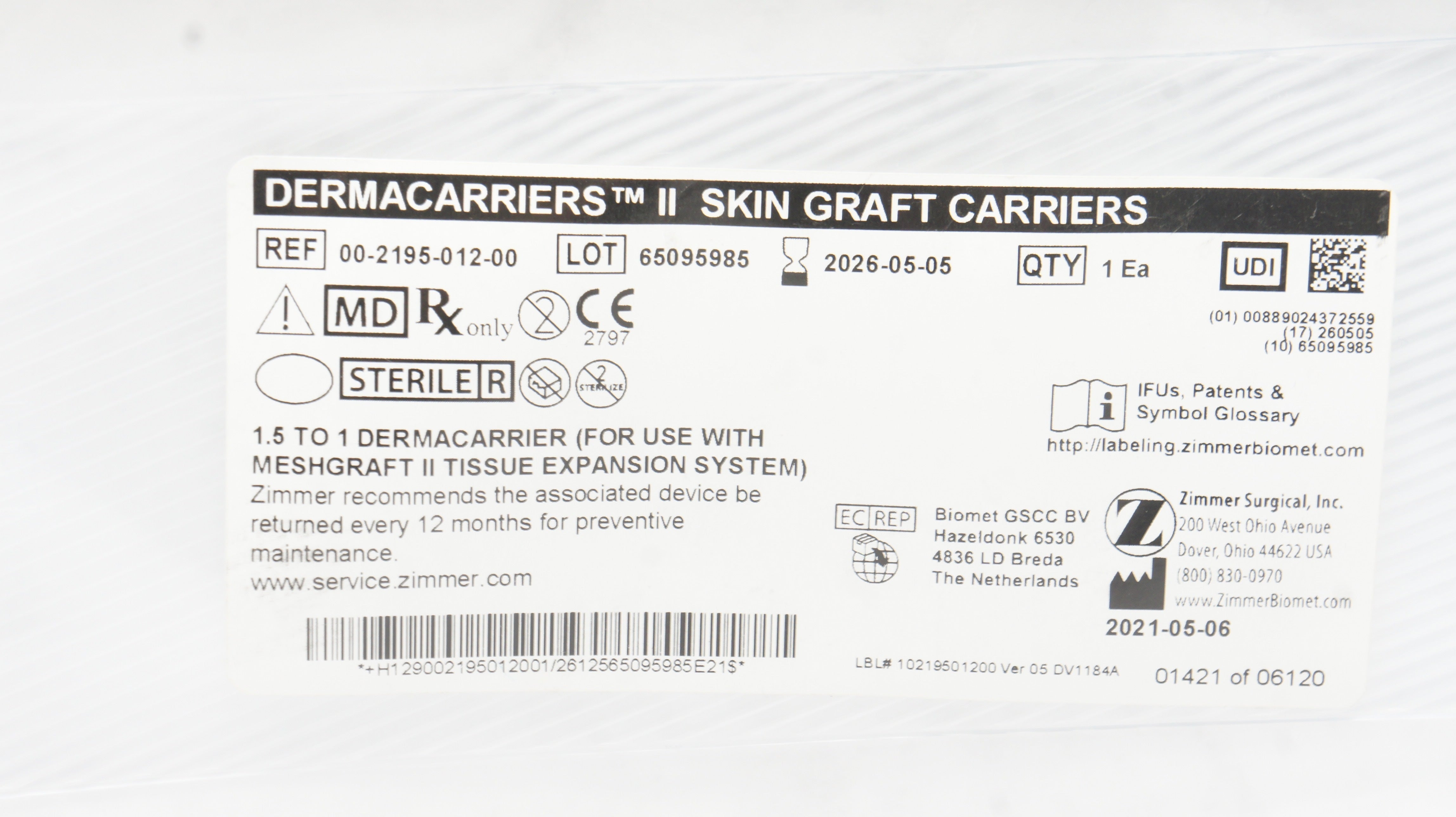 Zimmer 00-2195-012-00 Dermacarriers II Skin Graft Carriers 1.5 to 1