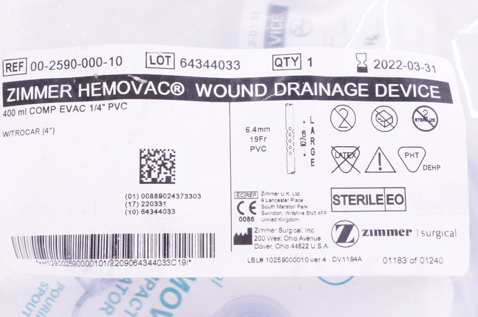 - Zimmer 00-2590-000-10 Hemovac Wound Drainage Device (x)