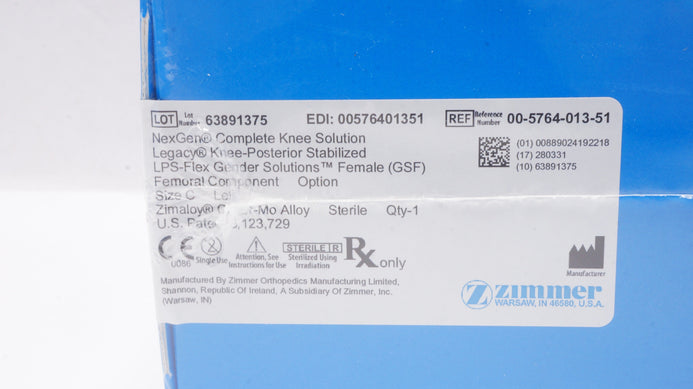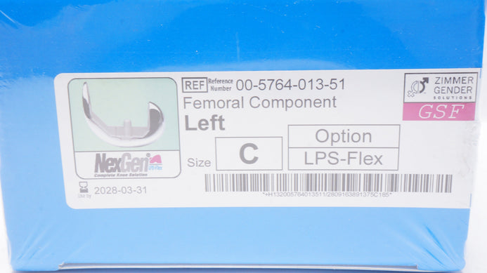 Zimmer 00-5764-013-51 NexGen Complete Knee Solution, legacy Knee-Posterior Stabilized LPS-Flex Gender Solutions Female (GSF) Femoral Component Option, Size C Left