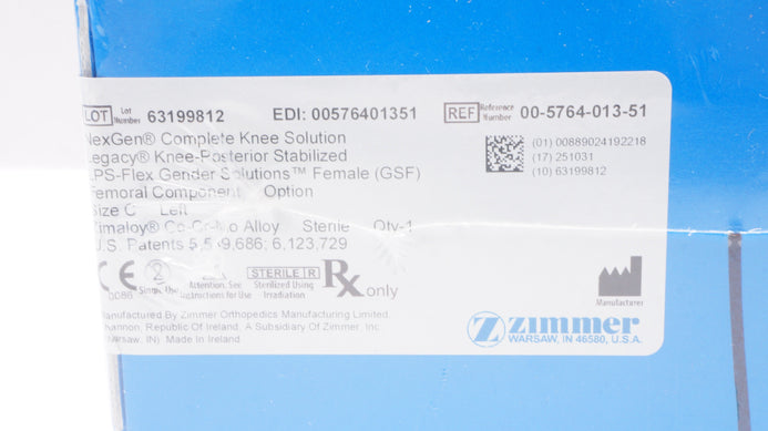 - Zimmer 00-5764-013-51 NexGen Complete Knee Solution, Size C Left