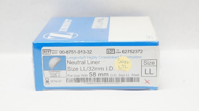 Zimmer 00-8751-013-32 Longevity Crosslinked Polyethylene Neutral Liner SizeLL(x)