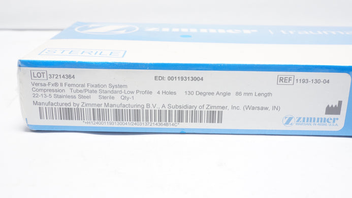Zimmer 1193-130-04 Tube/Plate Standard-Low Profile 4 Holes 130Degree Angle 86mm