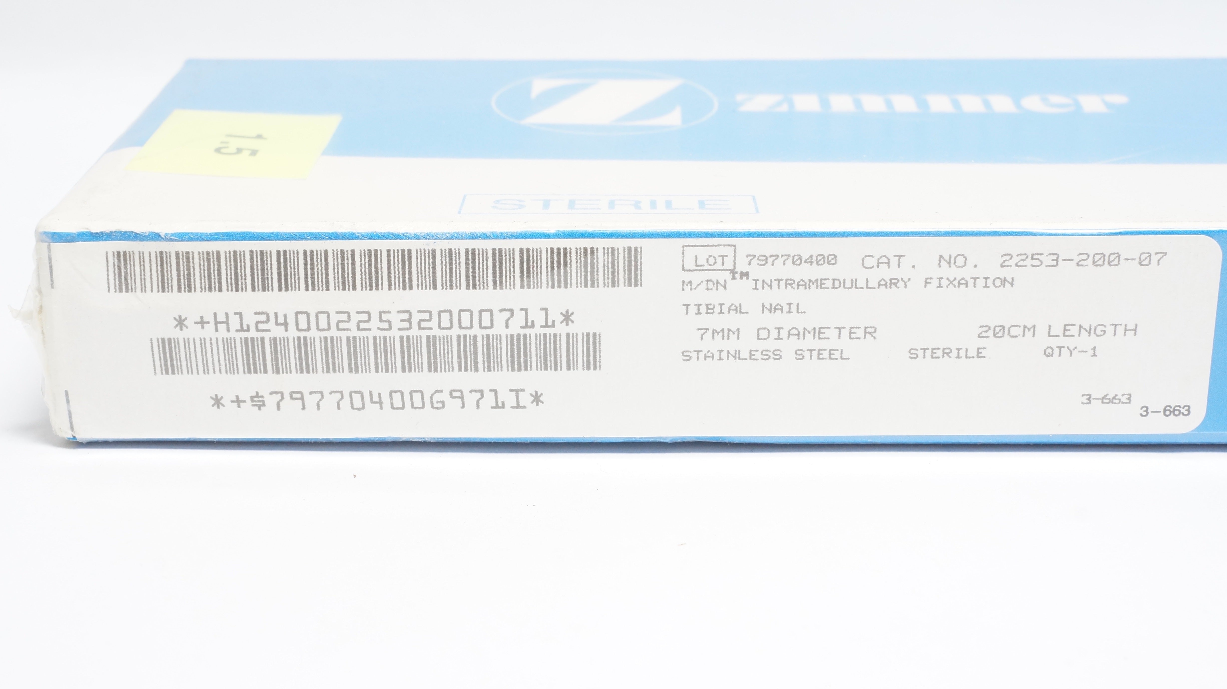 - Zimmer 2253-200-07 M/DN Intramedullary Fixation Tibial Nail 7mm x 20cm