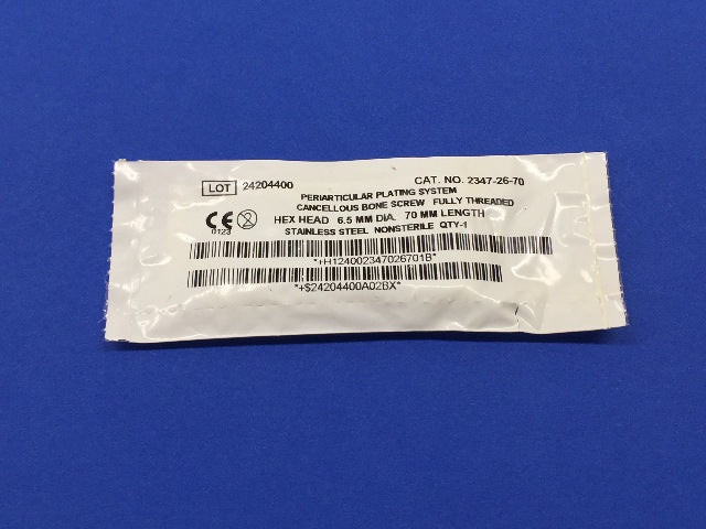 Zimmer 2347-26-70 Cancellous Bone Screw Fully Theaded Hex Head 6.5mm x 70mm